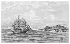 И мнится, жизни в той стране От века не бывало.Чрезвычайная сырость и холод вполне соответствовали такой мертвенности природы. Термометр стоял ниже точки замерзания; мокрый туман проникал, кажется, до костей. Все это вместе производило особенно неприятное впечатление на тело, равно как и на душу. Оставаясь несколько дней сряду в таком положении, мы начинали уже воображать, что навсегда отделены от всего обитаемого мира. Невзирая, однако же, на то, люди наши, благодаря Бога, были все до одного здоровы и со свойственной мореходам беспечностью пели и забавлялись по обыкновению, насколько позволяли обстоятельства.