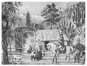 Мы имели более случаев познакомиться с нравами низшего класса. В пребывание наше в Альмендрале пользовались мы в свободные от работ минуты тихими лунными ночами, прелесть которых в Чили превосходит всякое описание, и в прогулки эти мешались в толпы веселящегося народа. Невзирая на страстную неделю, пульперии были всегда наполнены; на всяком шагу музыка, пение и пляски. Первая состоит обыкновенно из трех инструментов: арфы грубой работы, на которой почти всегда играет дама; гитары, ничем не отличающейся от обыкновенных, на которой, однако, играют, как на нашей балалайке; барабана, по которому бьют ладонями в такт; место его занимает иногда резонанс той же самой арфы, иногда лукошко и все, что издает глухой звук, иногда к этим инструментам присоединяется погремушка, жестяной цилиндр, наполненный камешками или горохом, которым весьма искусно производят трещащий звук. Все вместе составляет весьма недурной эффект. Оркестр этот сопровождается всегда вокальной музыкой; все 4 виртуоза изо всей силы поют ту же песню – женщины обыкновенно фистулой. Мы слышали одну и ту же мелодию всегда и везде; она весьма приятна, имеет постоянный и точный трехчетвертной такт, который музыканты никогда не теряют. Плясуны (обыкновенно одна только пара, мне никогда не случалось видеть более) становятся друг против друга; дама, закинув свой шерстяной платок на плечо, чилиец в шляпе, с сигаркой в зубах. Несколько минут продолжается прелюдия на инструментах, вместе с вокальной музыкой начинается пляска, обыкновенно тем, что дама топает правой ногой и скачком влево повертывается кругом, потом танцоры то сходятся, то расходятся, а в полустрофах обращаются друг около друга; па дамы походит на русское, движения ее так же грациозны, как в русской пляске; кавалер или очень скоро барабанит ногами, или делает па, подобное казацкому. Дама обыкновенно имеет в правой руке платок, которым плавно помахивает; кавалер или подбоченивается, или держит руки в карманах. С окончанием куплета плясуны останавливаются; затем следует прелюдия, потом пение и начало пляски по-прежнему, одна и та же пара делает ту же фигуру раз десять и более; иногда они вместе сходят со сцены, иногда сменяются поодиночке, но сцена редко остается незанятой. Пристрастье их к этой пляске необыкновенно: они смотрят на нее по целым часам, не сходя с места.
