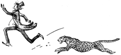 что звери идут к нему, и побежал во всю прыть. Должно быть, климат и впрямь омолодил его, ибо он не мчался так со школьных лет. На фалды, взлетавшие сзади, приятно было смотреть, но какой от них толк? Из животных, бежавших за ним, многие бегали быстро, сейчас – впервые, и они были очень рады новому развлечению. «Эй, лови! – кричали они. – Это лазло! Да, да! Ура! Хватай! Заходи спереди!»Через минуту-другую одни забежали спереди и перегородили ему путь, другие были сзади, и, поневоле остановившись, дядя озирался в ужасе. Куда ни взглянешь – звери. Над самой головой – огромные лосиные рога и слоновый хобот. Важные медведи и кабаны глядели на него, и приветливые леопарды, и насмешливые пантеры (это ему казалось), а главное – все разинули пасти. На самом деле они переводили дух, но он думал, что они хотят сожрать его.