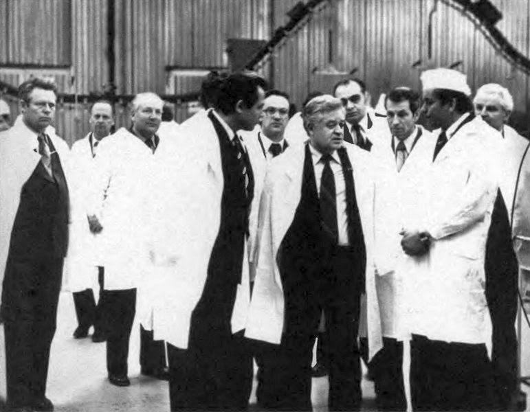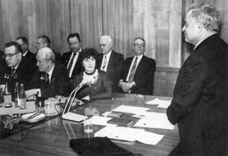 На совещании министерства в 1986 году. За столом справа в первом ряду — В. С. Семенихин, слева — В. П. Ефремов. Во втором ряду справа налево: О. А. Лосев, В. Л. Коблов, А. Н. Коротоношко