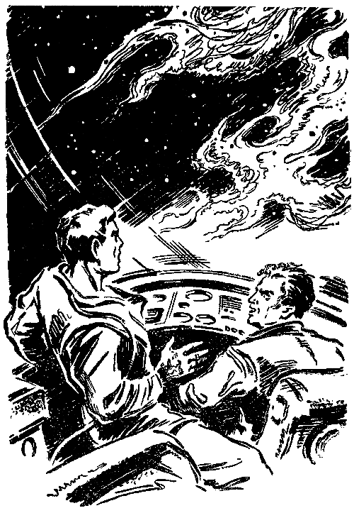 Некогда было обмениваться эмоциями. Надо было срочно определить свое место, и я включил астрокоординатор. Предстояло пройти режим торможения, сделать разворот на обратный курс и снова включить автомат сихронизатора, чтобы он снова — если только сработает во второй раз — пронес нас сквозь время к тому месту, откуда начался опыт.