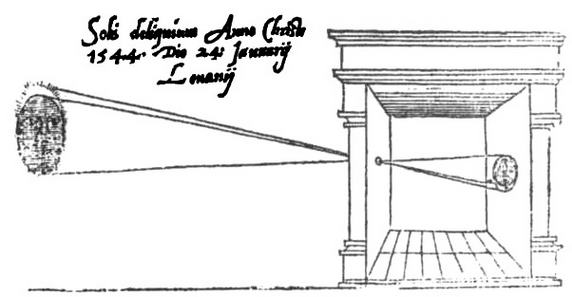 Схема квадранта, который Коперник построил в замке Ольштын для астрономических наблюдений, с надписью на латыни: 24 января 1544 года.