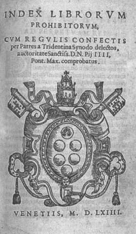 Обложка Индекса запрещенных книг, издание 1564 года. Через 52 года сюда будет включена книга Коперника «О вращении небесных сфер».