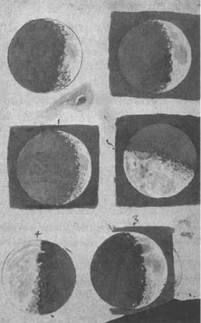 Рисунки лунной поверхности, сделанные Галилеем. Его приверженность гелиоцентрической модели привела к осуждению и приговору Святой палаты.