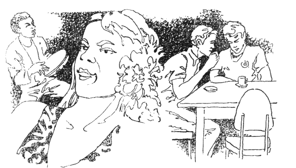Зека внимательно смотрит на негра и, собрав с усилием морщины на лбу, ищет какой-то убедительный аргумент. А негр не хочет ждать, он требует ответа немедленно.