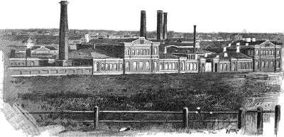 Завод расположен в широкой котловине, на берегу речки Лососинки. Длинные почерневшие трубы резко обрисовываются на ярком полуденном небе. Рабочих на заводе около 800 человек — число несоразмерно малое по количеству заводских приспособлений; в нем 63 различные печи, две турбины в 120 сил, шесть гидравлических колес в 100 сил, три паровые машины в 100 сил, два паровые молота и множество исполнительных механизмов. Когда-то очень деятельное отделение по отливке орудий стоит в настоящее время заброшенным, молчаливым, пустым, так как заказов на них не поступает; завод приготовляет только бомбы, гранаты и шрапнели, числом около 84,000 штук, на сумму 324,000 рублей.