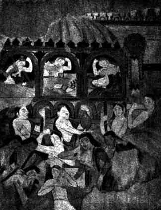 Оплакивание Сиавуша. Стенная роспись. Здание II. Древний Пянджикент