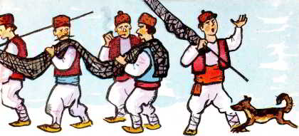 В одной далекой стране, у самого берега моря, был поселок. В поселке жили рыбаки. Утром, еще до восхода солнца, они выходили на шаландах в море и целый день ловили рыбу. А вечером возвращались со своим уловом. Солнце целыми днями обжигало лица рыбаков, и они от этого стали загорелыми-загорелыми.