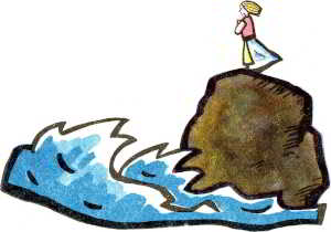 Проходил день за днем. Напрасно Синь искала глазами парус Славы. Чтобы не сбиться со счета, она каждый день брала из стены хижины камень и клала возле себя. Горка камней росла, а стены все уменьшались.