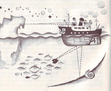 А если послать звук не в глубину моря, то есть не по вертикали, а по горизонтали, то можно определить, как далеко находится судно от берега, или во время тумана узнать, нет ли впереди каких-либо препятствий, на которые рискует наткнуться судно: не идет ли навстречу судно, не плавает ли ледяная гора-айсберг? Звуковая волна натыкается на препятствие и возвращается обратно, ее улавливает прибор, который называется гидролокатором, он и сообщает о препятствии капитану.