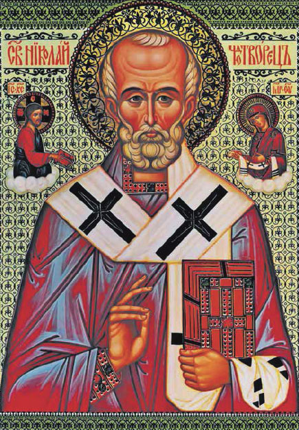 Святитель Николай, архиепископ Мир Ликийских, чудотворец, прославился как великий угодник Божий. Он родился в городе Патары [1] Ликийской области (на южном побережье Малоазийского полуострова), был единственным сыном благочестивых родителей Феофана и Нонны, давших обет посвятить его Богу. Плод долгих молитв ко Господу бездетных родителей, младенец Николай со дня рождения своего явил людям свет будущей своей славы великого чудотворца. Мать его, Нонна, после родов сразу исцелилась от болезни. Новорожденный младенец еще в купели крещения простоял на ногах три часа, никем не поддерживаемый, воздавая этим честь Пресвятой Троице.