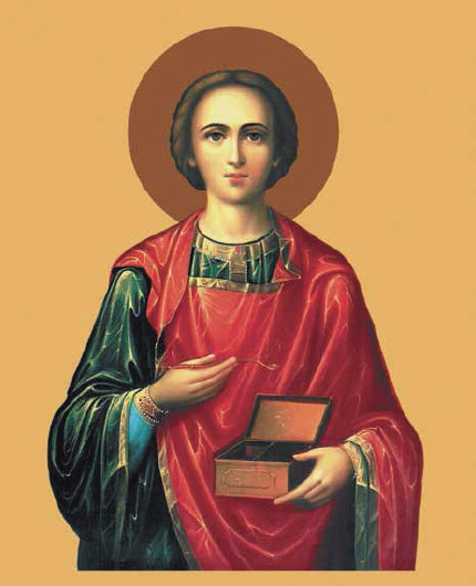Святой великомученик и целитель Пантелеимон родился в Вифинии (Малая Азия) в городе Никомидия в семье знатного язычника Евсторгия и был назван Пантолеоном (что значит «по всему лев»), так как родители желали видеть его мужественным и бесстрашным юношей. Мать, святая Еввула (память 12 апреля), воспитывала мальчика в христианской вере, но рано окончила свою земную жизнь. Тогда отец отдал Пантолеона в языческую школу, а затем обучал его медицинскому искусству у знаменитого в Никомидии врача Евфросина. Отличаясь красноречием, хорошим поведением и необыкновенной красотой, юный Пантолеон был представлен императору Максимиану (284–305), который захотел оставить его придворным врачом.