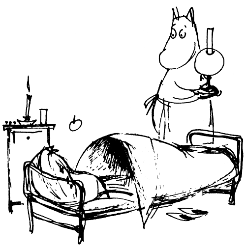 Нинни едва слышными шагами кралась за муми-троллями целый день. Они оборачивались при звуках колокольчика, следовавшего за ними по пятам, и Нинни уже не казалась им такой чудной.