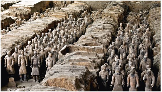 Государство впервые стало единым при императоре Цинь Шихуане (259–210 гг. до н. э.), чье имя переводится как «первый властитель-император Цинь». Он девять лет потратил на объединение (оно же завоевание) шести самостоятельных царств, а затем лично назначал и смещал своих представителей в провинциях. Его гробница с армией терракотовых воинов и сегодня поражает воображение и справедливо считается одним из чудес света: около семи с половиной тысяч воинов в полный рост, причем не встретишь и двух одинаковых лиц, плюс колесницы и лошади. Можете представить себе размах, свойственный этому правителю! Поэтому вас наверняка не удивит, что именно он начал строительство самого крупного инженерного проекта в древней истории – Великой стены длиной в 6700 километров, главной задачей которой полагалась защита от варваров. И хотя своего прямого назначения Стена не выполнила, она помогла добиться территориального единства страны и создать особый мир – тот, который зовется китайской цивилизацией.