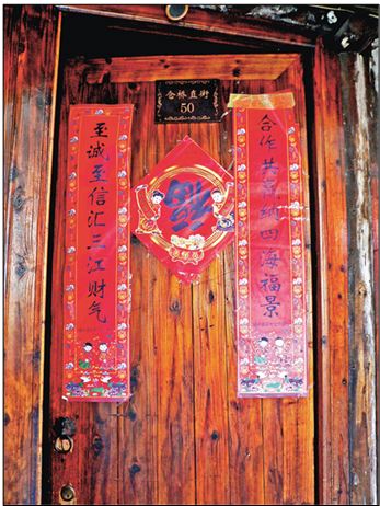 Перед Новым годом вся семья собирается и пишет на красных бумажных лентах чунь лянь – пожелания счастья, благополучия, удачи в торговле, делах и творчестве или стихи, исполненные тайного, но всегда благожелательного смысла. Эти ленты обычно крепятся на обе половинки ворот или дверей. А вот иероглиф «фу», что означает «удача» и «счастье», обычно вешают на дверь перевернутым – тогда счастье обязательно придет или свалится на вас. Ведь слово «перевернуть» (, do) созвучно слову «прийти» (, d`ao), так что это означает «приди, удача». Вон сколько нюансов! Главное –