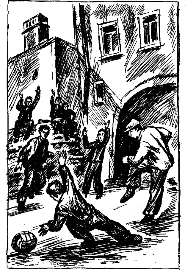 Только один из них не гонялся сломя голову по всему двору. Не по летам грузный и длинный — не зря его прозвали Витька-Башня, — он топтался неподалеку от ворот противника.