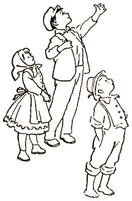 И вот он держит верёвку, а к другому концу её привязан змей. Он поднялся уже так высоко, что нельзя было различить ни носа, ни рта. Змей лишь тихонько кивал головой и поворачивал хвост то вправо, то влево. Гонзик чувствовал в руках лёгкое подёргивание. Как это было прекрасно! Он готов был пускать змея до самого вечера!