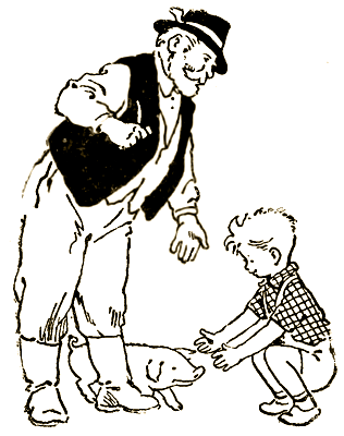 В глубине двора в загонах лежали большие свиньи с маленькими поросятами. Поросята повизгивали и бегали вокруг матерей, как цыплята вокруг наседки. Гонзику они очень понравились, и дедушка дал ему подержать одного поросёнка. Мать даже не шевельнулась, только поглядывала, не случилось ли чего-нибудь с поросёнком.
