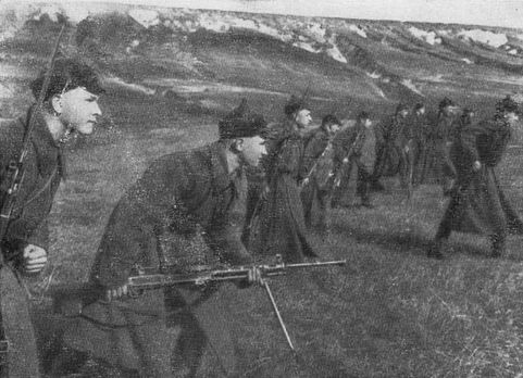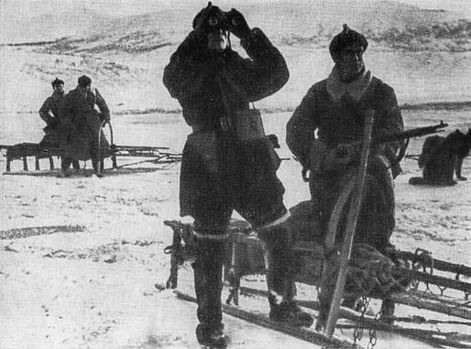 Командиры погранотряда Мурманского округа на рекогносцировке местности в тылу противника зимой 1941/42 года