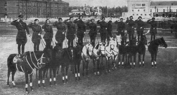 Конноспортивные выступления жен офицеров Ново-Петергофского пограничного военного училища имени К. Е. Ворошилова — участниц конного пробега по маршруту Приморский край — Москва. 1935 г.