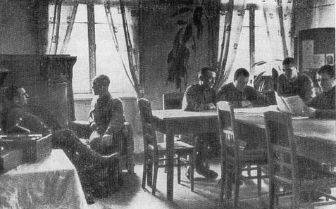 Сержант И. Н. Волков читает сообщение о перемирии с Финляндией. 1944 г.