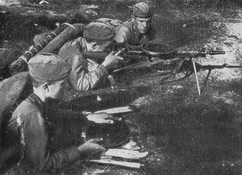 На огневом рубеже. Пограничники А. С. Махов, К. П. Черногубов и А. Н. Воронин