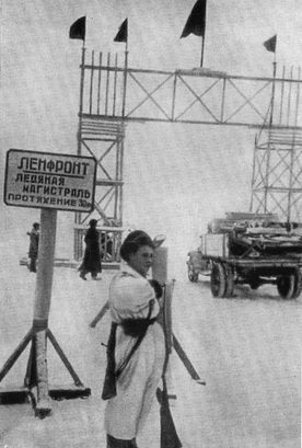 Военком войск охраны тыла Ленфронта, бригадный комиссар С. И. Гусаров, начальник политотдела войск, полковой комиссар Н. Н. Январев, политрук для поручений старший политрук Ф. Г. Коптов. Весна 1942 г.