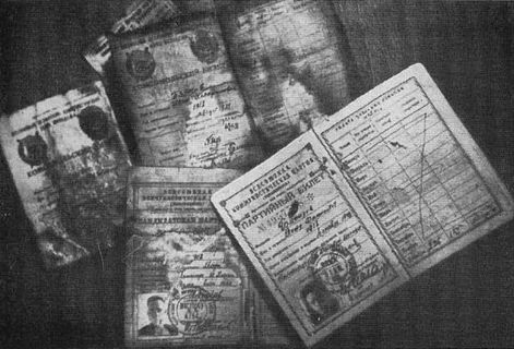 Партийные и комсомольские билеты пограничников Бакарева и Пяткова, павших смертью храбрых в бою на территории Австрии 13 апреля 1945 г.