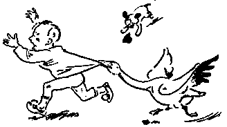 Да «большие ноги» на выручку пришли! Свистнула в воздухе хворостина, гусак бросил Мурзилку и, переваливаясь с ноги на ногу, побежал в сторону.