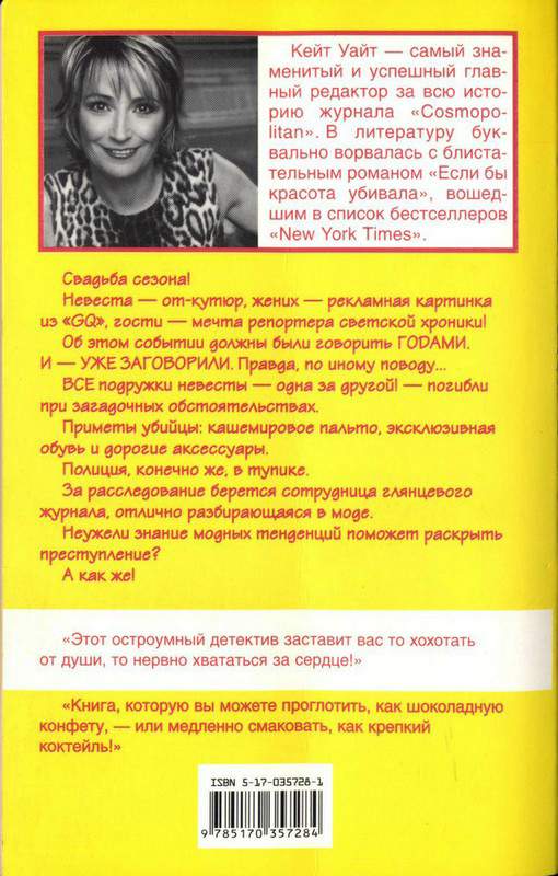 — Честно говоря, не знаю, — сказала я, рассеянно любуясь рубиновыми отсветами в моем бокале с вином. — Ее определенно будут судить за покушение на мою жизнь. К счастью, Брайен видел все собственными глазами и выступит на процессе свидетелем. Что же касается двух убийств… Поживем — увидим. Я передала фотографии и негативы, хранившиеся в том же конверте, в «Глосс». Там мне сказали, что вода для негативов смерть, но они попытаются восстановить снимок Пейтон и ее дружка. Я почти уверена, что полиция проследит путь денег, которые Пейтон была вынуждена вложить в бизнес Джейми. Зная точно, что Пейтон подмешала Робин в коктейль пшеничные зародыши, полицейские эксперты могут попробовать раскрутить и этот след. Ну и еще одна приятная новость: детектив Пиховски созвонился с полицейскими, которые вели дело Джейми в Нью-Йорке, и те выудили в протоколах следствия любопытный факт, которому в свое время не придали значения: в день убийства Джейми кто-то из соседей видел на лестнице женщину, похожую на Пейтон. Возможно, этот свидетель даже ее опознает.