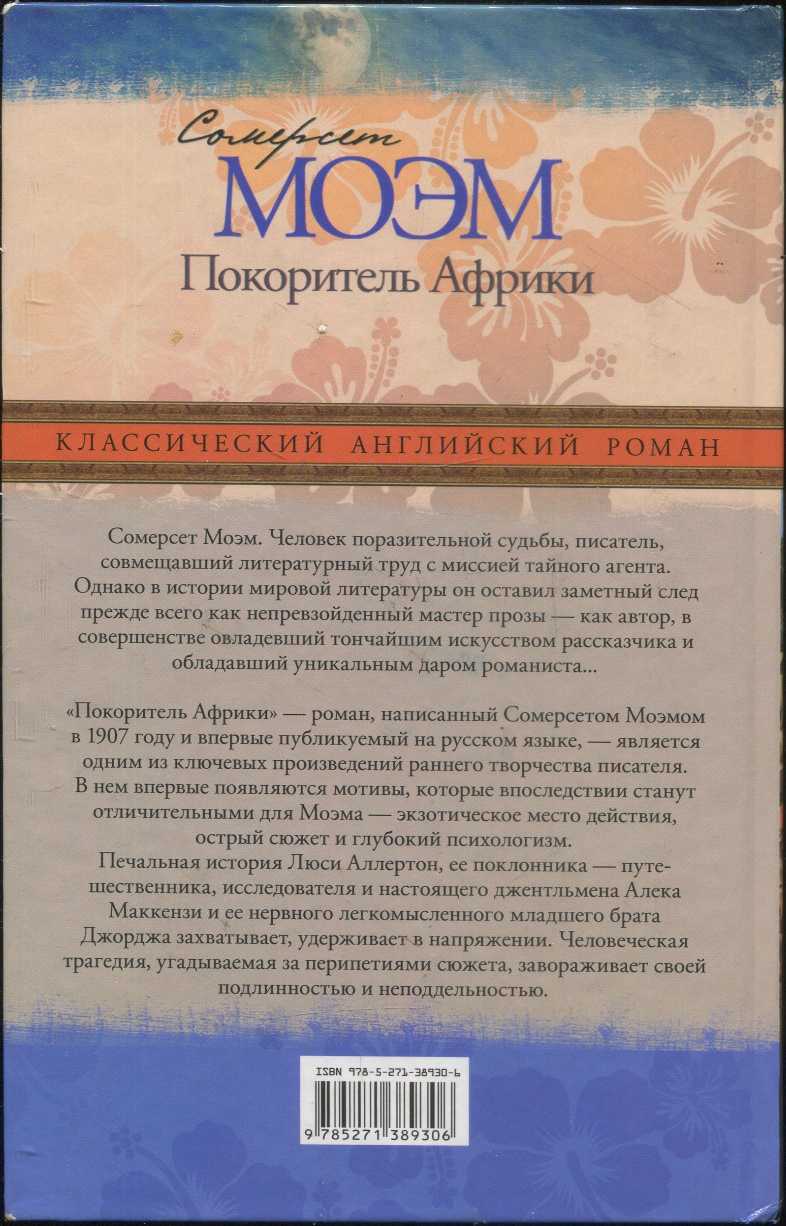 «Покоритель Африки» — роман, написанный Сомерсетом Моэмом в 1907 году и впервые публикуемый на русском языке, — является одним из ключевых произведений раннего творчества писателя. В нем впервые появляются мотивы, которые впоследствии станут отличительными для Моэма — экзотическое место действия, острый сюжет и глубокий психологизм.