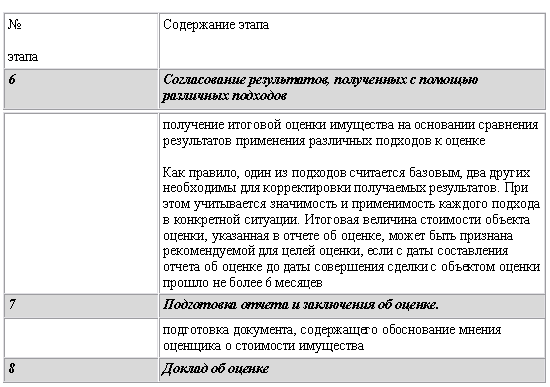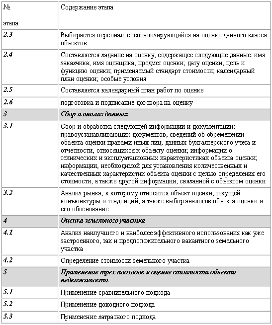 Процесс оценки недвижимости состоит из этапов (табл.3.3), выполняемых последовательно для определения ее стоимости.
