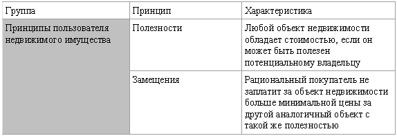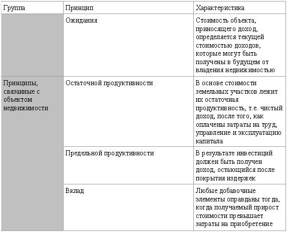 В мировой практике участники рынка недвижимости выработали унифицированный набор фундаментальных оценочных правил или принципов, которые объединяются в четыре взаимосвязанные группы (табл. 3.1).