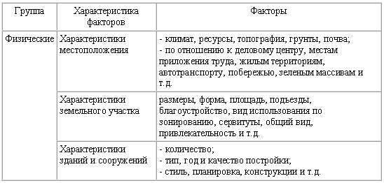 группы факторов, существенно влияющих на стоимость недвижимости, представленные в табл. 3.2.Таблица 3.2