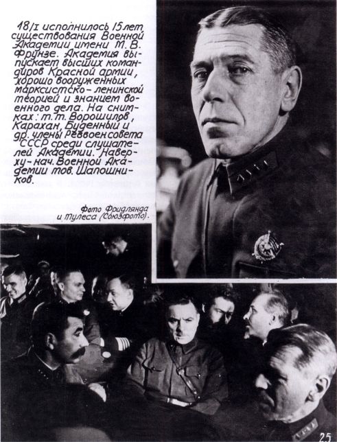 Красного Знамени. В 1925–1928 гг. командовал войсками Ленинградского и Московского военных округов. В 1928–1931 гг. — начальник штаба РККА. В 1930 г. вступил в ВКП(б). В 1931–1937 гг. — командующий войсками Приволжского военного округа, начальник Военной академии имени Фрунзе, командующий Ленинградским военным округом. С мая 1937-го начальник Генштаба РККА. В мае 1940 г. Шапошникову присвоено воинское звание Маршала Советского Союза.«Штабная работа должна помогать командиру организовывать бой; штаб — первейший орган, с помощью которого командир проводит в жизнь свои решения…
