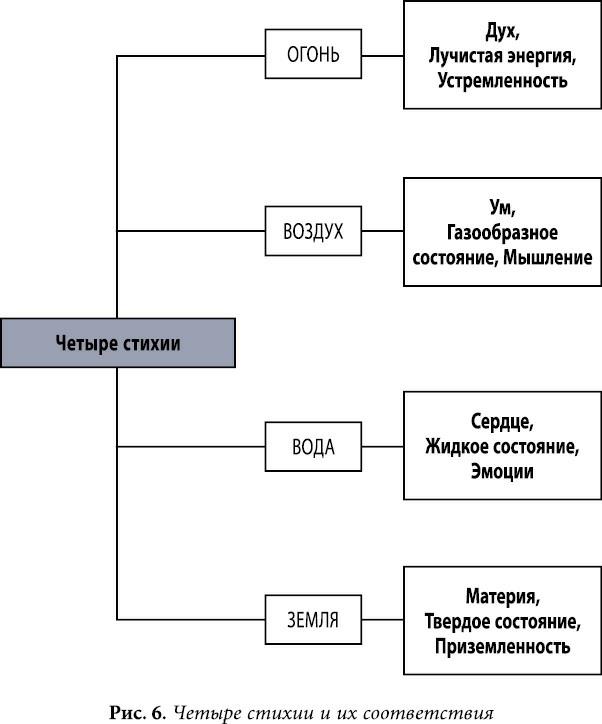 Древние греки создали теорию о четырех главных стихиях, объясняющую природу реальности (рис. 6). Мысль о том, что все в природе можно описать с помощью четырех базовых принципов, господствовала на протяжении более 2000 лет и оказала значительное влияние на философию, медицину, искусство, науку и гадание. Например, современная физика говорит о четырех фундаментальных силах природы. В области психологии Карл Юнг использовал теорию о четырех стихиях для развития своих представлений о работе человеческого ума. На эту древнюю теорию опирается популярная типология личности Майерс-Бриггс [97] .