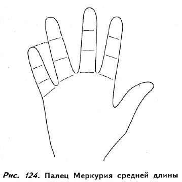 Люди с длинной средней фалангой пальца Меркурия (рис. 129), напротив, любят выражать себя таким образом. Конечно же, самыми длинными средние фаланги бывают на руках писателей, но также и на руках людей, владеющих искусством эпистолярного жанра, и тех, кому легче выразить свои мысли на бумаге, чем при помощи слов. Часто такие люди прекрасно осведомлены о своих способностях, но ничего не делают для того, чтобы их развить и найти им практическое применение.