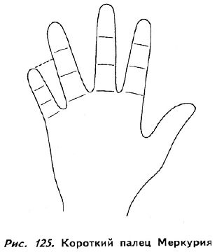 Очень часто самой короткой оказывается средняя фаланга (рис. 128). Она управляет литературными и письменными способностями человека. Люди, у которых эта фаланга короткая, делают все возможное для того, чтобы избежать необходимости выражать свои мысли на бумаге.