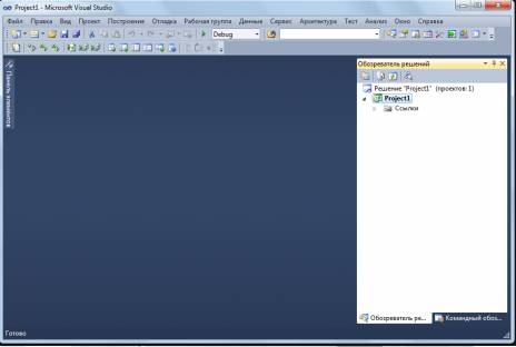 После создания нового проекта среда Visual Studio будет выглядеть так, как показано на рисунке.