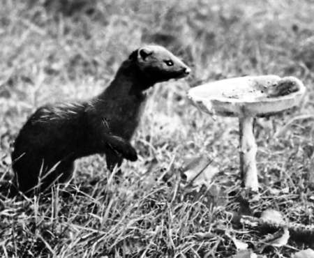 В сухое лето 72-го года мы наблюдали ежа, приходившего пить из плошки, какую ставили во дворе курам. В тех же местах у Оки я снял куницу, искавшую, почти не страшась человека, влагу в воронке большого гриба…
