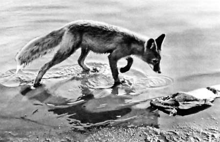 На другой день мы попросили рыбаков снова высадить нас на косе. В этот раз рыбу выбрали покрупнее — ее не просто было уволочь в лес — и мы часа три снимали возню лисиц, сами в ней принимали участие — отнимали рыбу и оставляли ее в нужном для съемки месте…