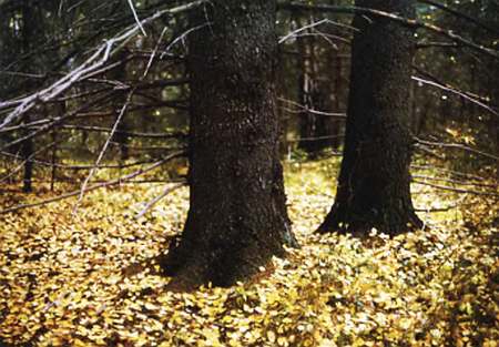 Древний ельник с примесью разных иных пород мрачным не выглядит. Там, где образовались «окна» от упавших деревьев, сейчас же в рост идут молодые березки, получив свет, тянутся кверху, соревнуясь друг с другом, малютки-елочки. «Лучшего субстрата для елок, чем тело своих родичей, нет», — говорят лесники. А на гарях (они случались в древних лесах от гроз) моментально прорастает щетина березок вперемежку с осинником. Это первая ступень леса. Березы и осины живут недолго — лет до ста, умирая, они уступают место ельникам в местах сыроватых и соснам — в сухих. Дубняки, сосны и ели царствовали в древних лесах, образуя вместе с подрастающими ярусами своих соплеменников и иными членами лесного сообщества систему хорошо сбалансированную, живущую по законам, определившимся еще в те времена, когда людей на земле не было, когда с лесом взаимодействовали только животные, грибы, ягоды, травы, мхи и лишайники.