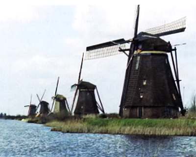 Во время войны положением крыльев мельники передавали английским летчикам заранее оговоренным сигналом важные сведения, сообщали антифашистскому Сопротивлению о возможных облавах. А во время национального праздника мельниц, во вторую субботу мая, как пишут, «вертится все, что может вертеться». Глянув на карту, заметишь: значками помеченная тысяча ветряных мельниц рассыпана по пространству небольшого равнинного государства. Но есть места, где значки нарисованы кучно. Вблизи Роттердама сохранилась «ассоциация» из девятнадцати мельниц. Зрелище их, стоящих возле канала, удивительной красоты.