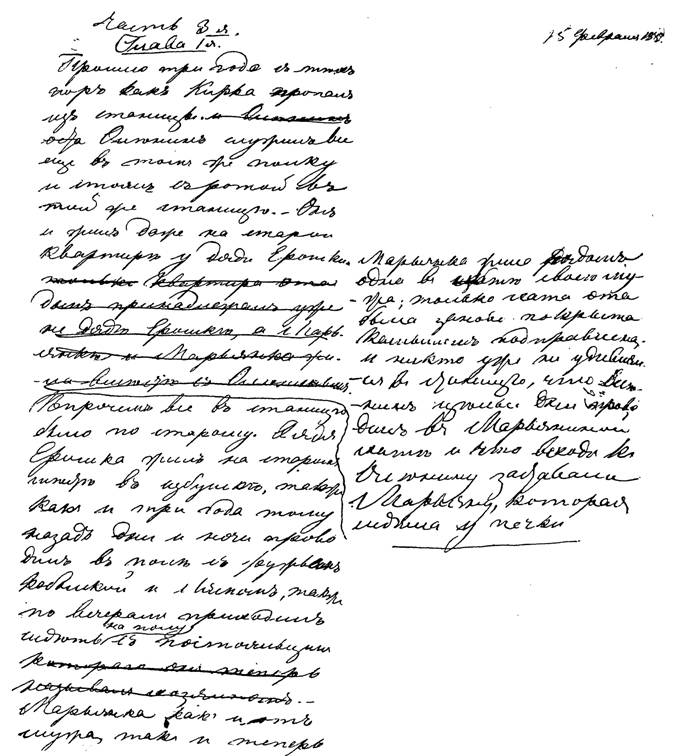 Съ друзьями и родными въ Россiи онъ почти три года прервалъ всякое сношенiе и родные знали про него отъ другихъ. Начатыя его тетради «исторiи кавказской войны» и «о значенiи нравовъ» лежали нетронутыми въ чемодан. Онъ по совту дяди Ерошки «бросилъ, простилъ всмъ». Книгъ онъ тоже не читалъ.