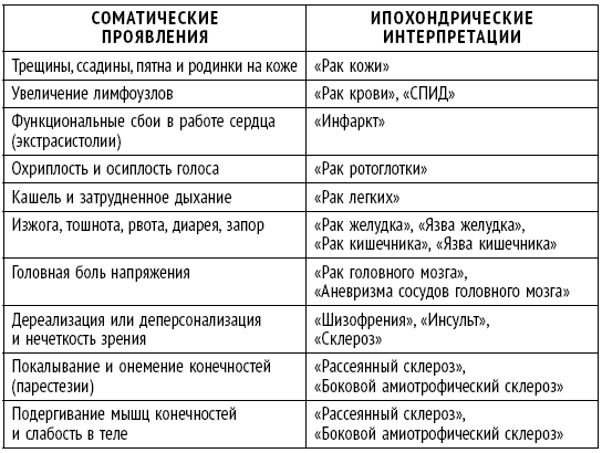 Варианты искаженных катастрофических интерпретаций соматических проявлений в случае с ипохондрией, речь о которых шла выше, представлены ниже (табл. 3).