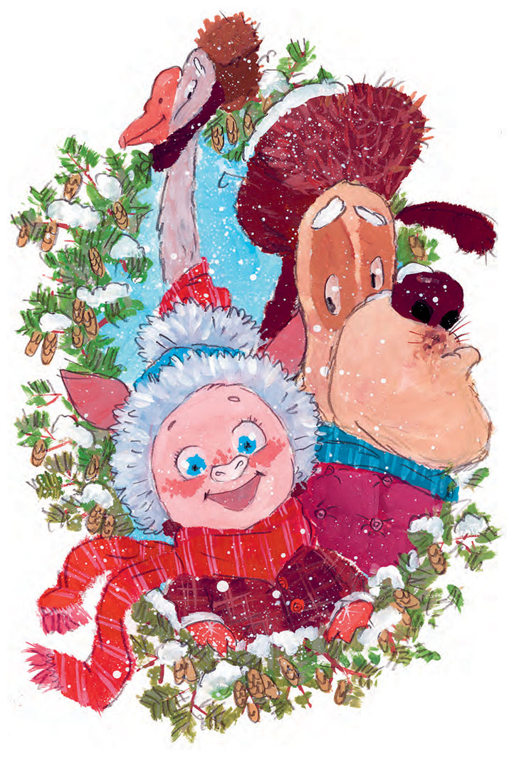 – Ура! – воскликнул Нюка и тут же решил слепить огромного снеговика, настоящую крепость, горку, себя большого и отважного в капитанской фуражке и очень кругленький снежок, который было бы приятно держать в лапке. Немного подумав, он решил начать со снежка. Но не начал, потому что услышал за спиной голос неизвестного: