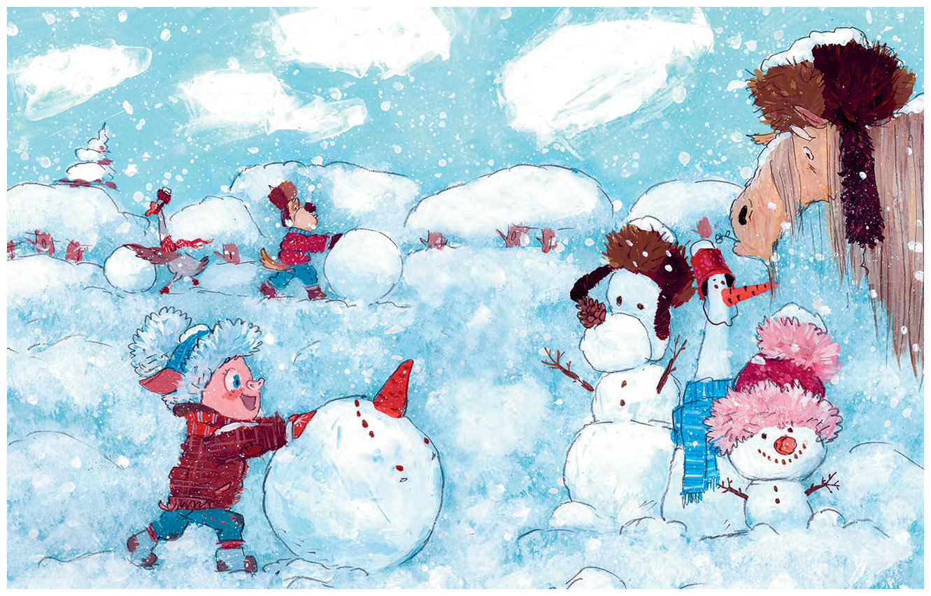 Там – повсюду лежал белый пушистый снег. К радости Нюки, снег превосходно лепился.