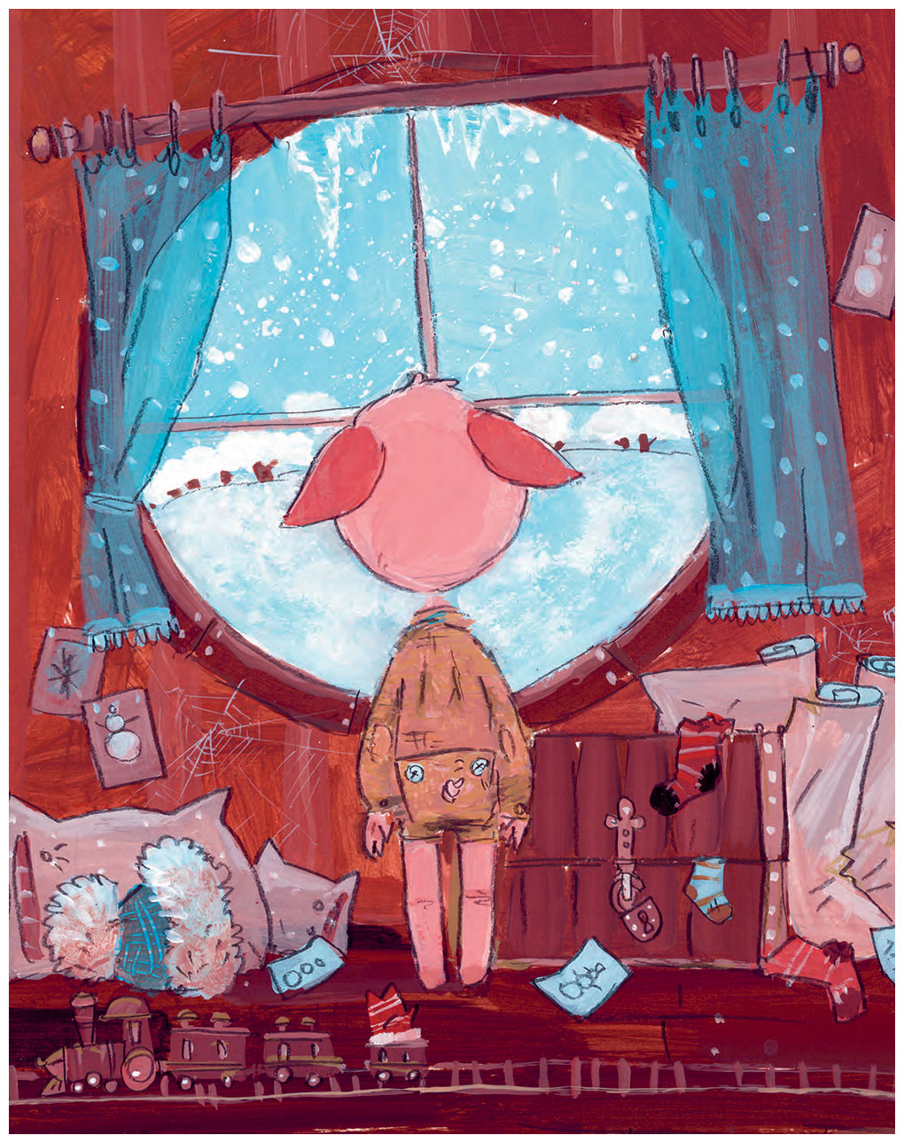 Нюка проснулся, выскочил из своей постельки и тут же побежал к окну:
