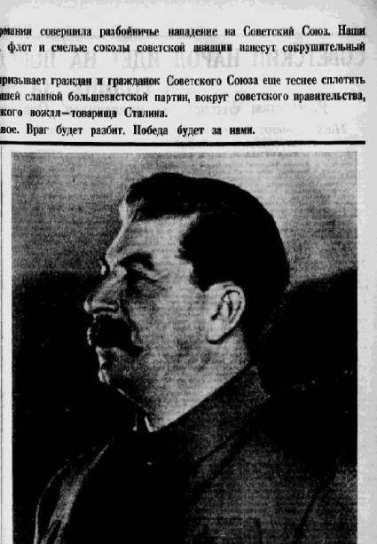 И похоже, что это был один из первых номеров газеты «Правда», вышедший сразу после нападения германии на СССР. Вряд ли это газета от двадцать второго июня. Помнится, что про войну объявили только в двенадцать часов дня. А номер газеты готовят к печати заранее. Так что это либо от двадцать третьего, либо от двадцать четвёртого июня сорок первого года.