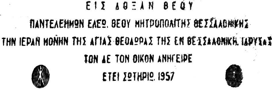 Рис. 38. Табличка над входом в церковь в Салониках, в Греции, на иконостасе которой стоит крест с двумя драконами. Фотография Н. Д. Гостева, 2011 год.